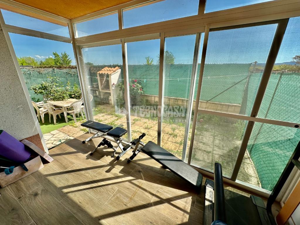 El inmueble se divide en 2 plantas, a la planta baja accedemos por un agradable patio de unos 35 m2 aproximadamente por el que entramos a la vivienda, amplio hall, aseo, amplia cocina amueblada, salón comedor en doble ambiente con salida a porche acristalado, ideal para hacer ejercicio o relajarte leyendo, y amplio patio trasero con barbacoa y posibilidad de poner tu jardín.