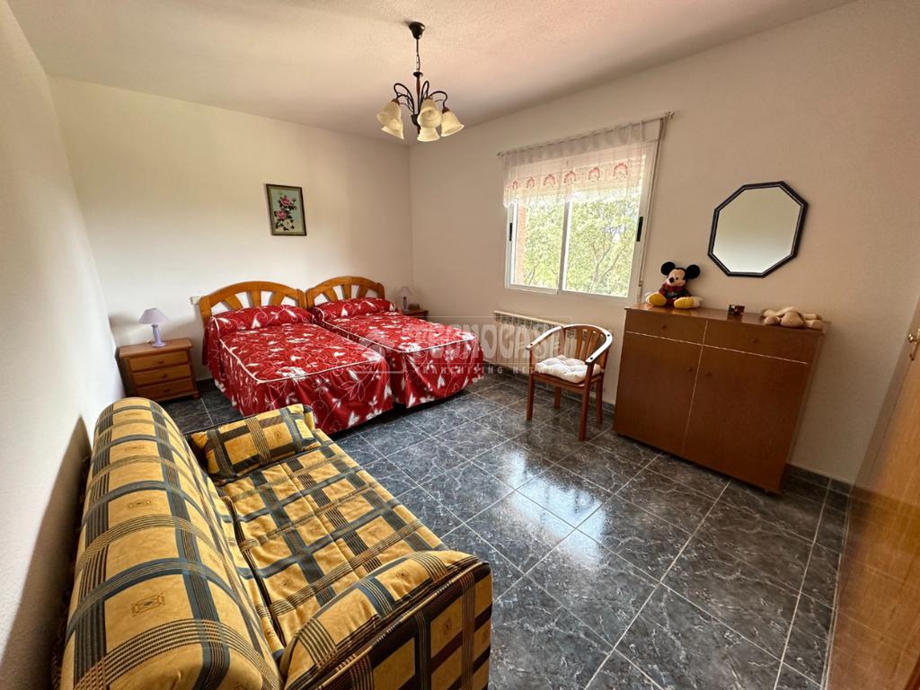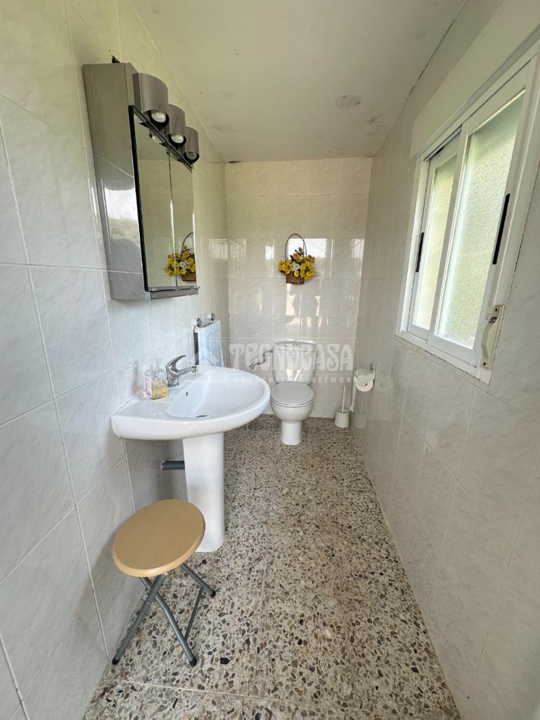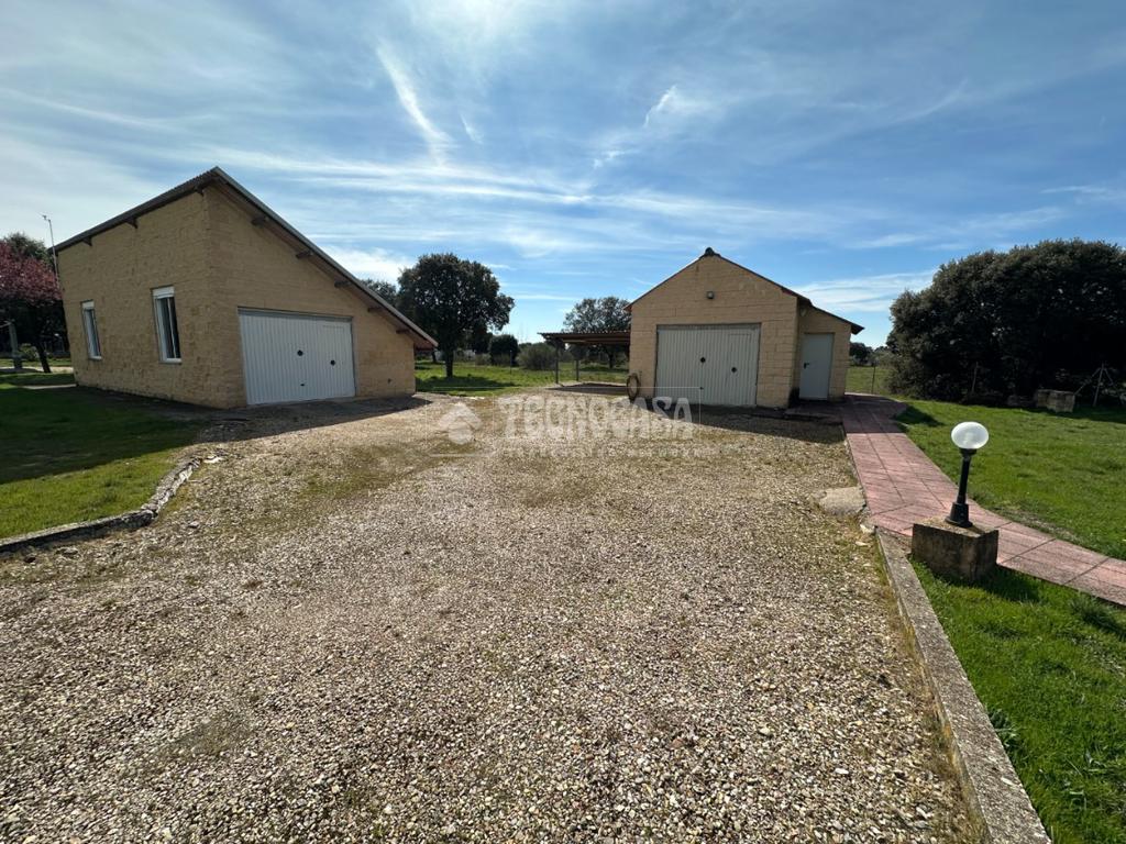 Dispone de otro garaje de unos 30 m2 junto con un techado para varios vehículos, leñera y un aseo muy útil para cuando estamos en el jardín.