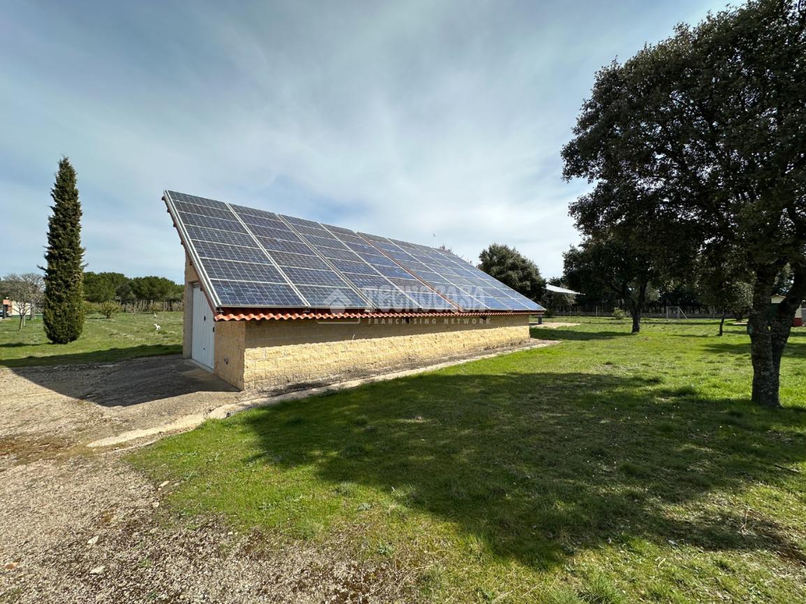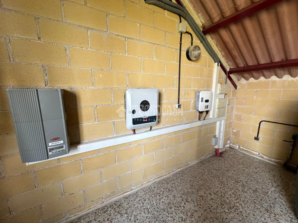 Aparte de las 56 placas solares del tejado de la nave cuenta con un inversor móvil rotativo hacia el sol con otras 24 placas solares, una buena inversión que tendrás, ya que es un negocio al tener tantas placas la energía que se produce, se vende a la distribuidora y obtendrás unos buenos beneficios. El precio de la venta de toda la infraestructura de las placas fotovoltaicas es aparte del precio de la finca.