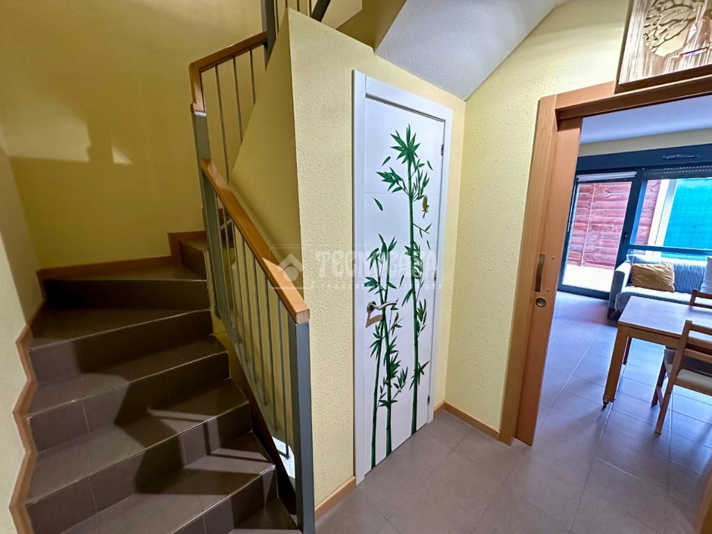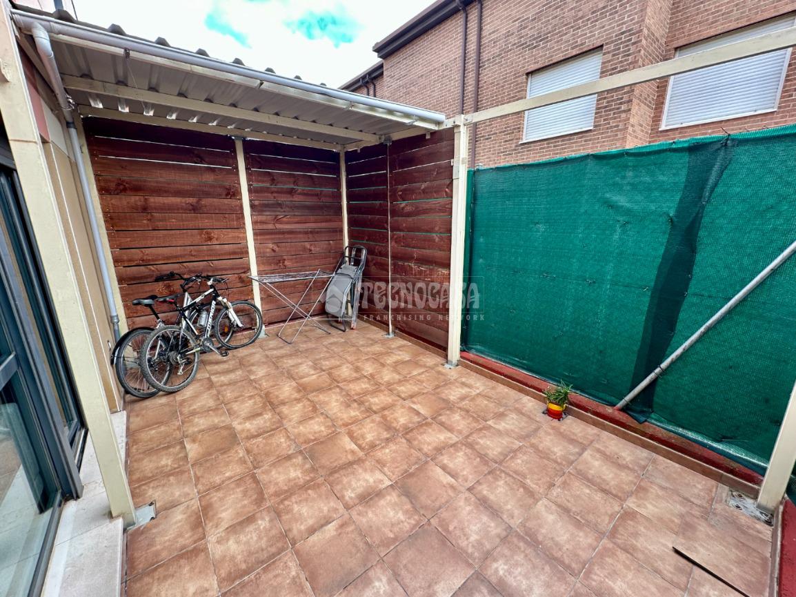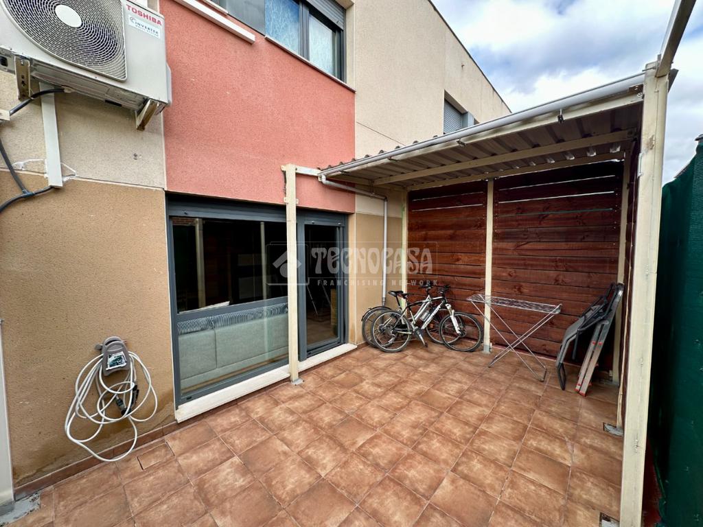 La vivienda se divide en dos plantas, en la planta baja, accedemos por el garaje, que se puede destinar como aparcamiento o otro uso, hall, cocina amueblada, aseo, y salón doble ambiente muy luminoso con salida a un agradable patio solado de unos 20 m2 aprox.