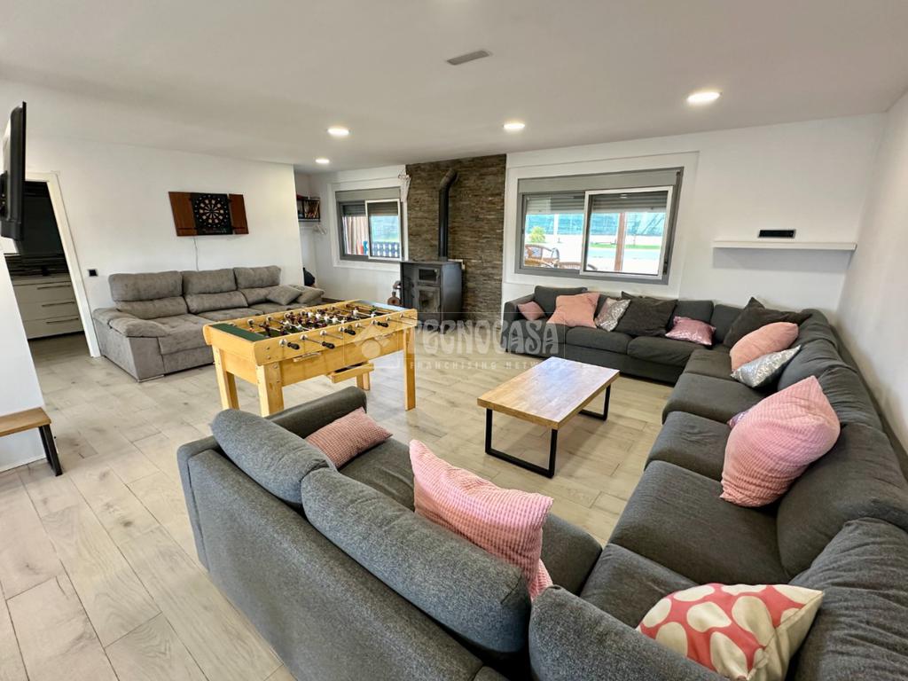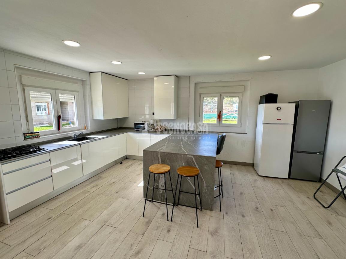 La vivienda dispone de 120 m2 construidos, en la que nos encontramos con una bonita cocina americana amueblada con una isla central, baño completo y un gran salón donde poder disfrutar y reunirse con familia y amigos.