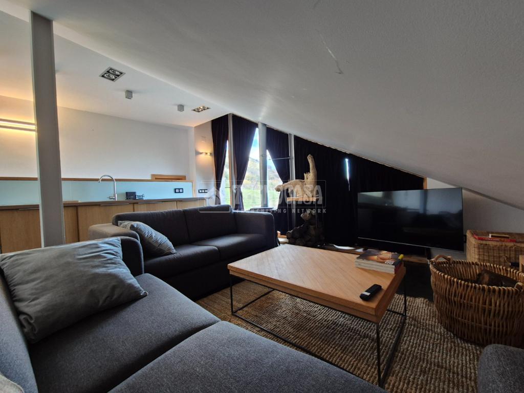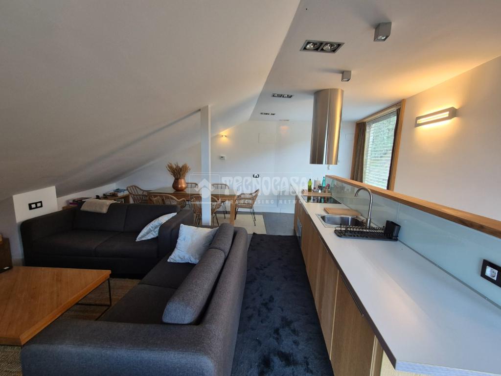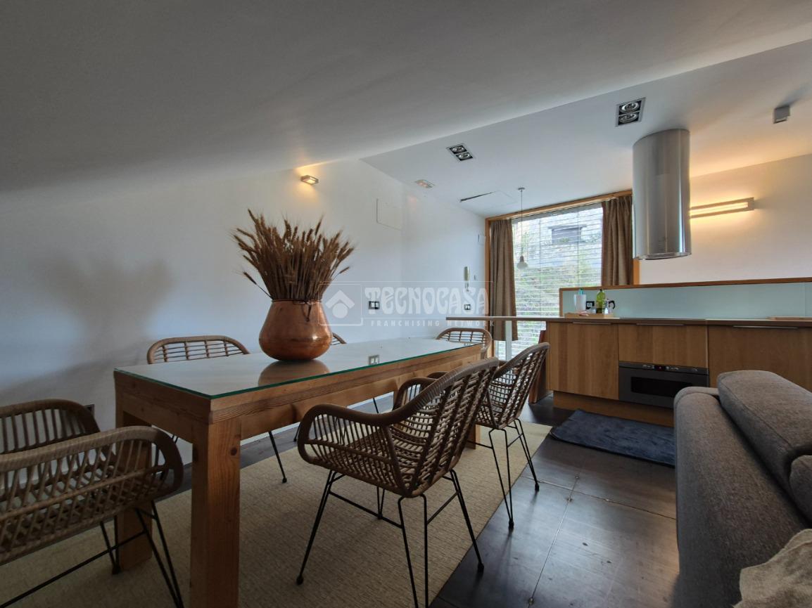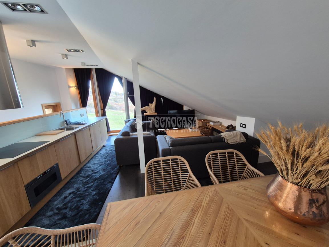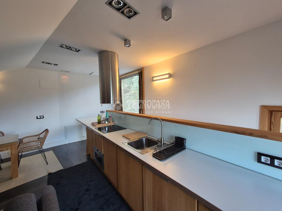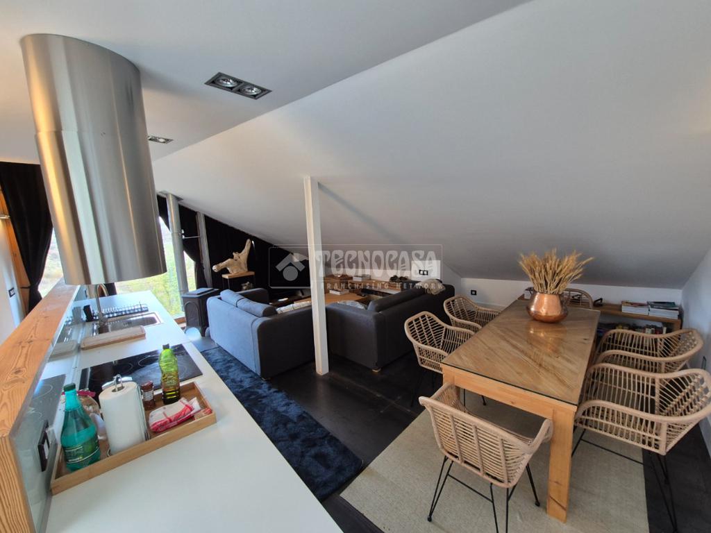 En la primera planta se encuentra un amplio salón-comedor con cocina americana amueblada y equipada y una acogedora chimenea de leña.